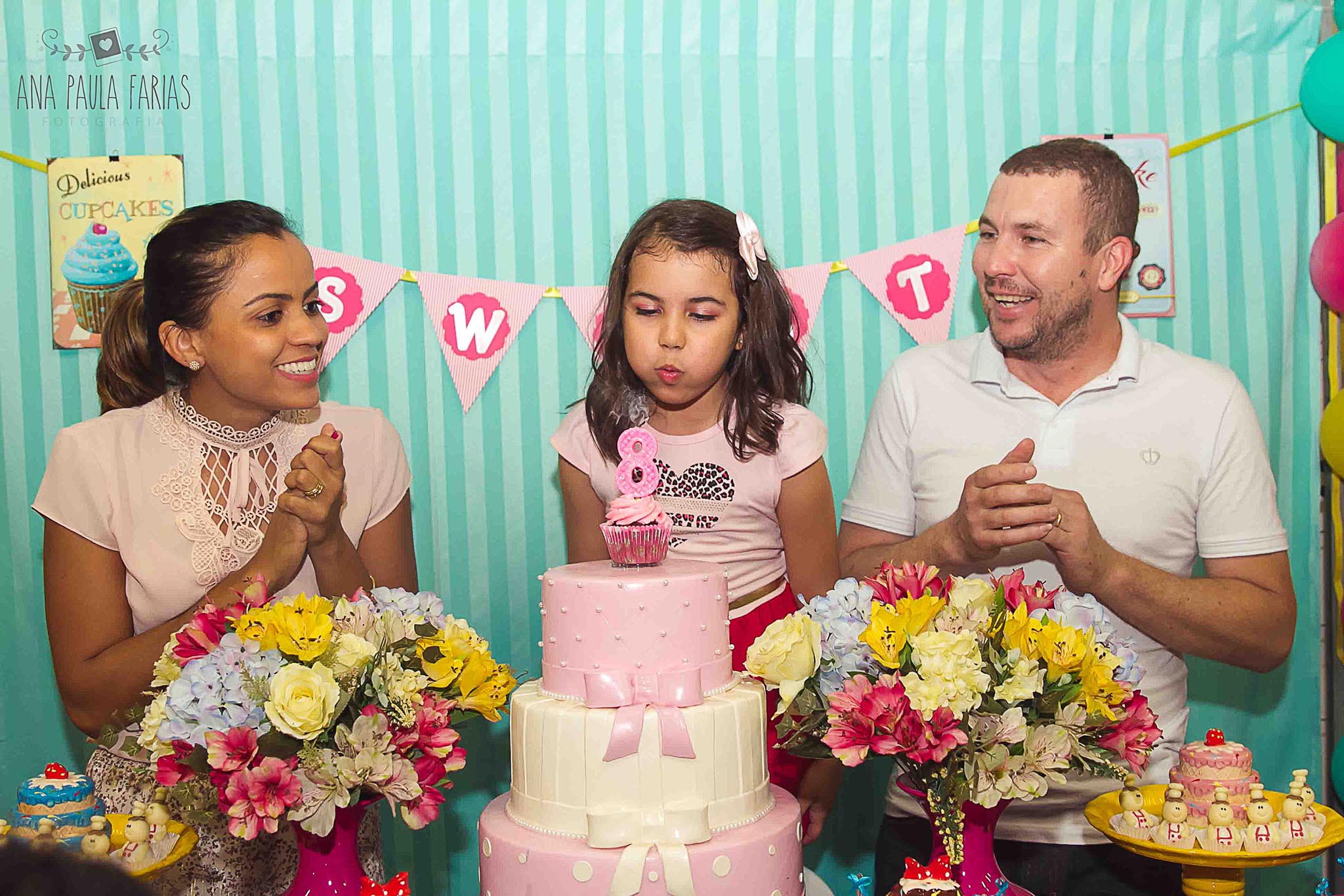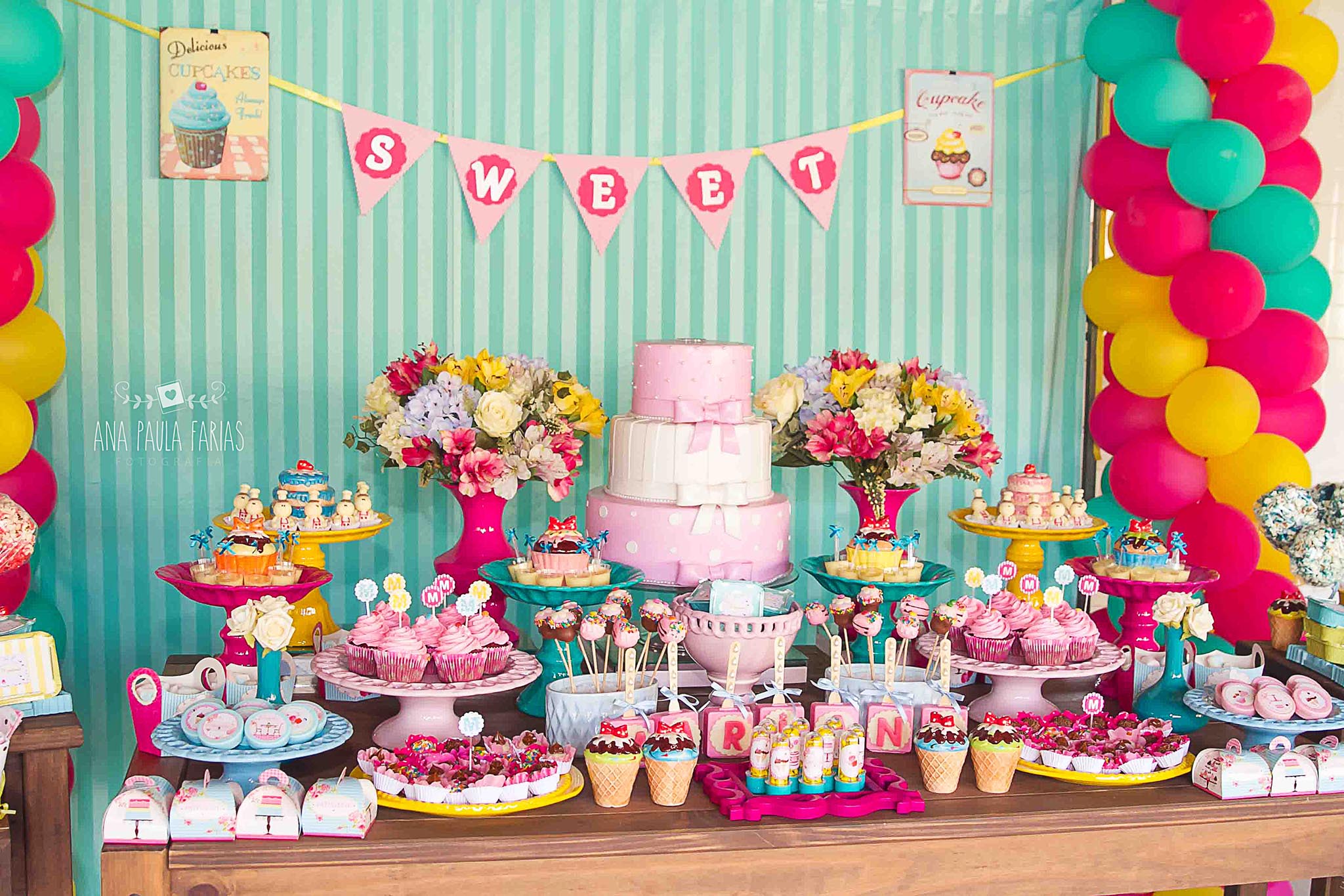 A decoração estava linda, cheia de detalhes e com um tema que a Mari amou: Confeitaria!