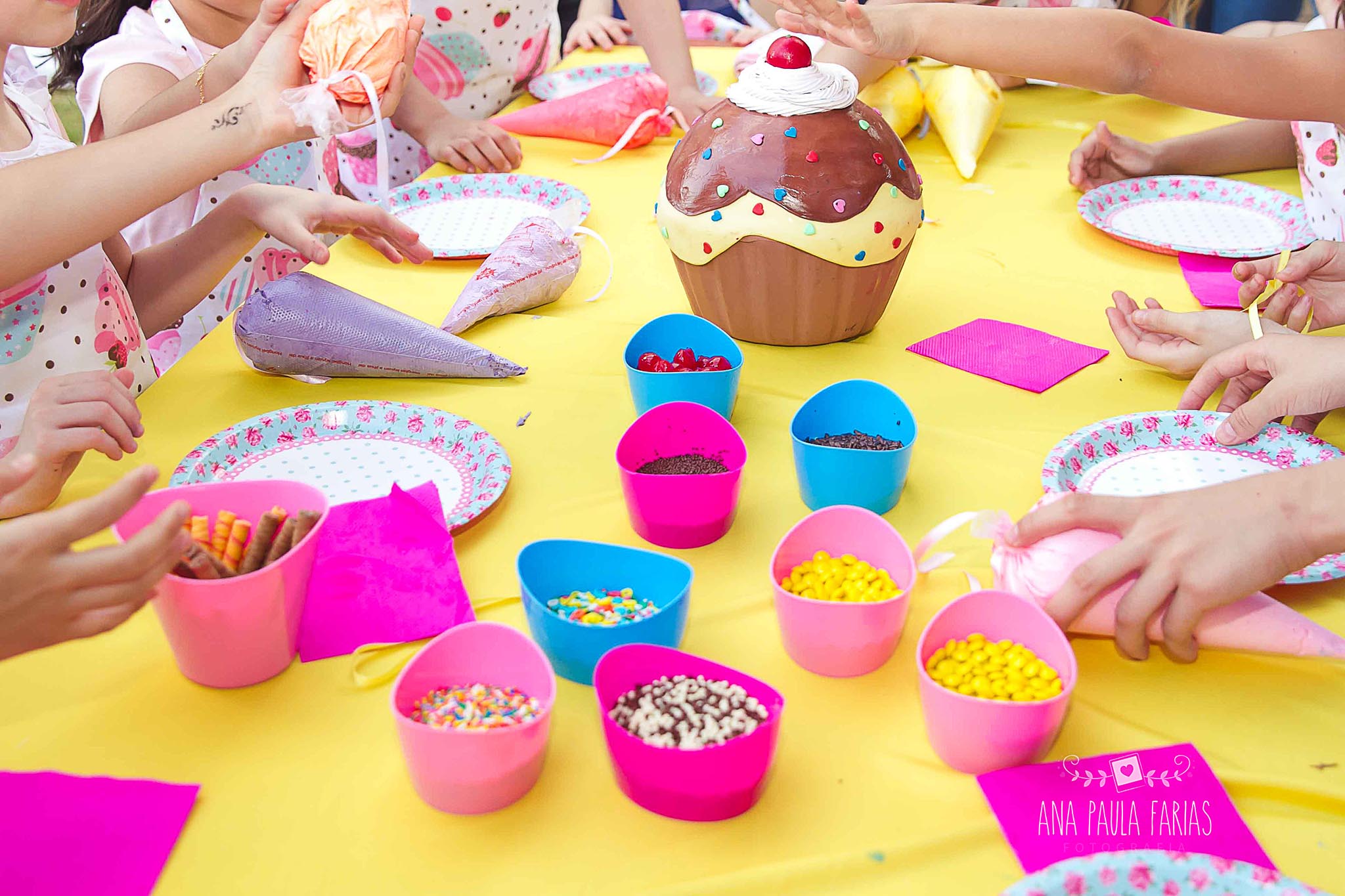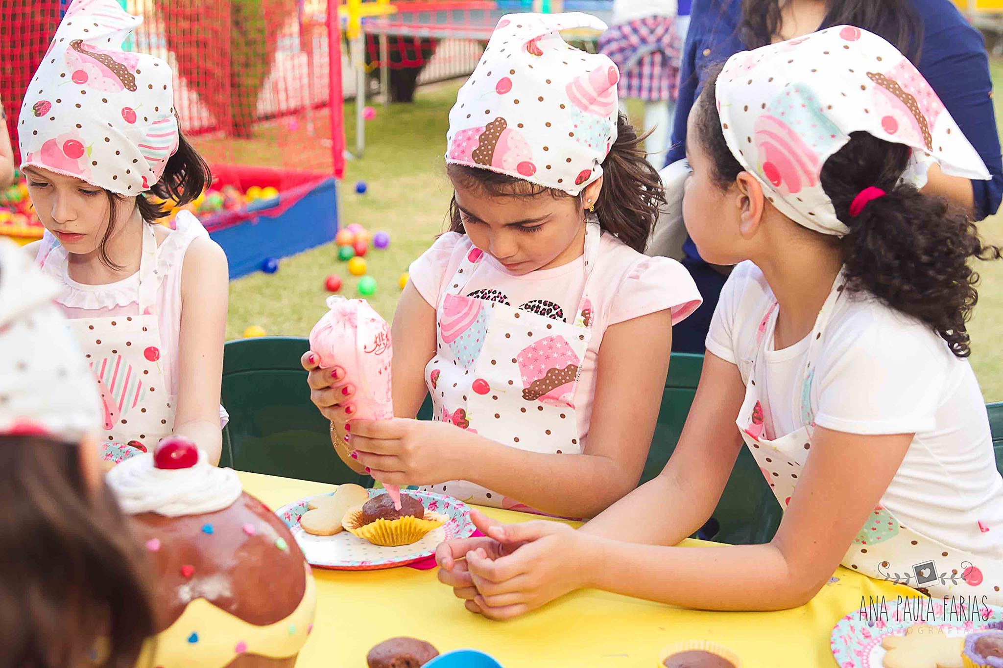 Ela e os amiguinhos se divertiram, brincaram pra valer e depois decoraram cupcakes e biscoitos. Foi incrível, resultados de Master Chef. rsrsrsrs